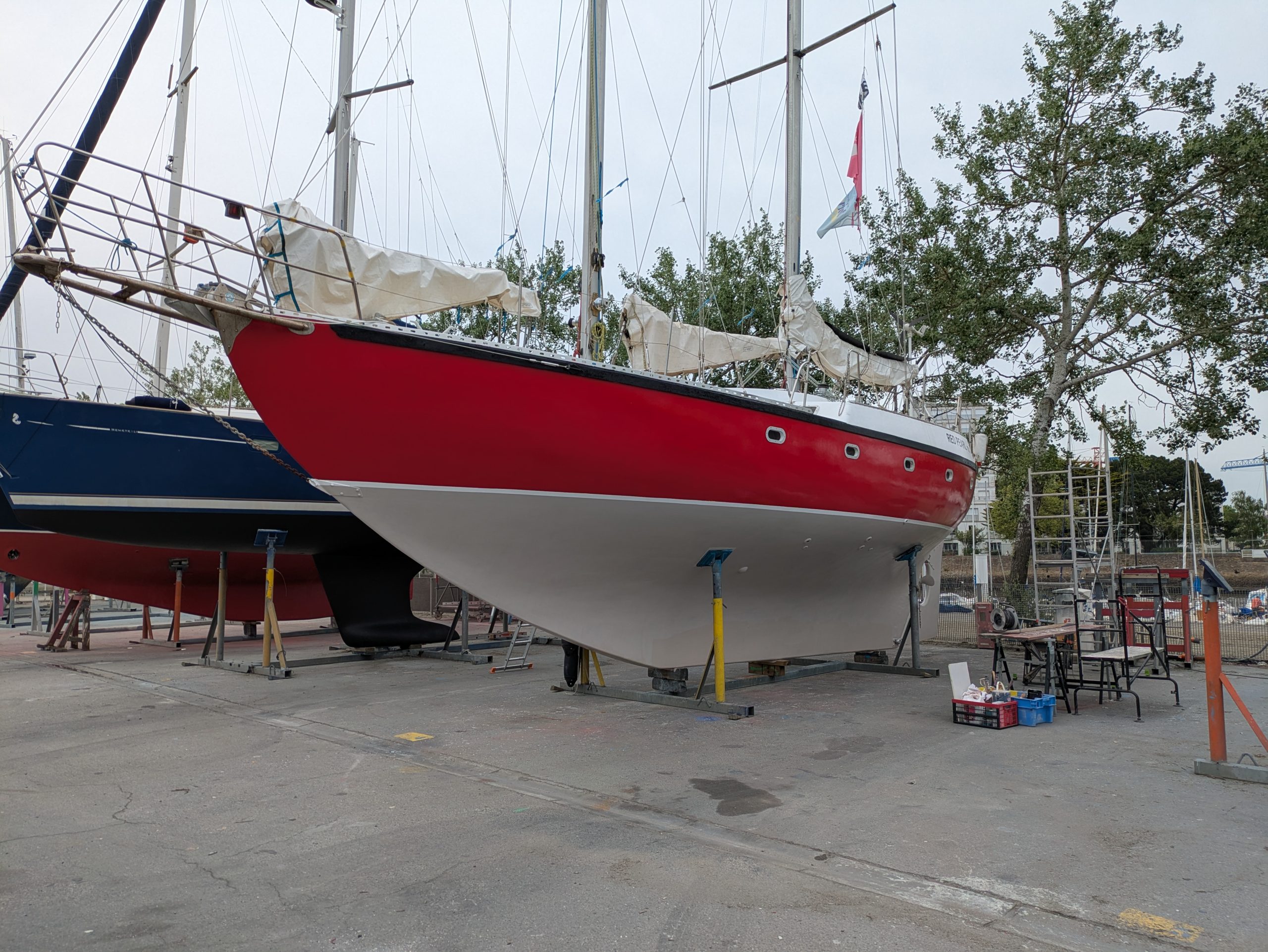 RED REARL est une construction en Ferrociment construit sur moule selon la technique du chantier de Saint-Jean d'Angle (Monsieur Lépée) par Jacky ROUX 1975 : création des plans, projet EUREKA 1978 : fabrication du moule à Royan 1979 : ferraillage 01/07/1979 : bétonnage de la coque 22/09/1980 : retournement de la coque 1980-1992 : aménagements 18/10/1993 : francisation La coque de RED PEARL est en excellent état de conservation -Coque ferrociment épaisseur 12 à 16 mm (ferraillage en maille carrée et fers diamètre 6 mm) -Enduit époxy -Peinture polyuréthane (œuvres vives) et monocomposant (œuvres mortes)Pont et superstructures / à propos :