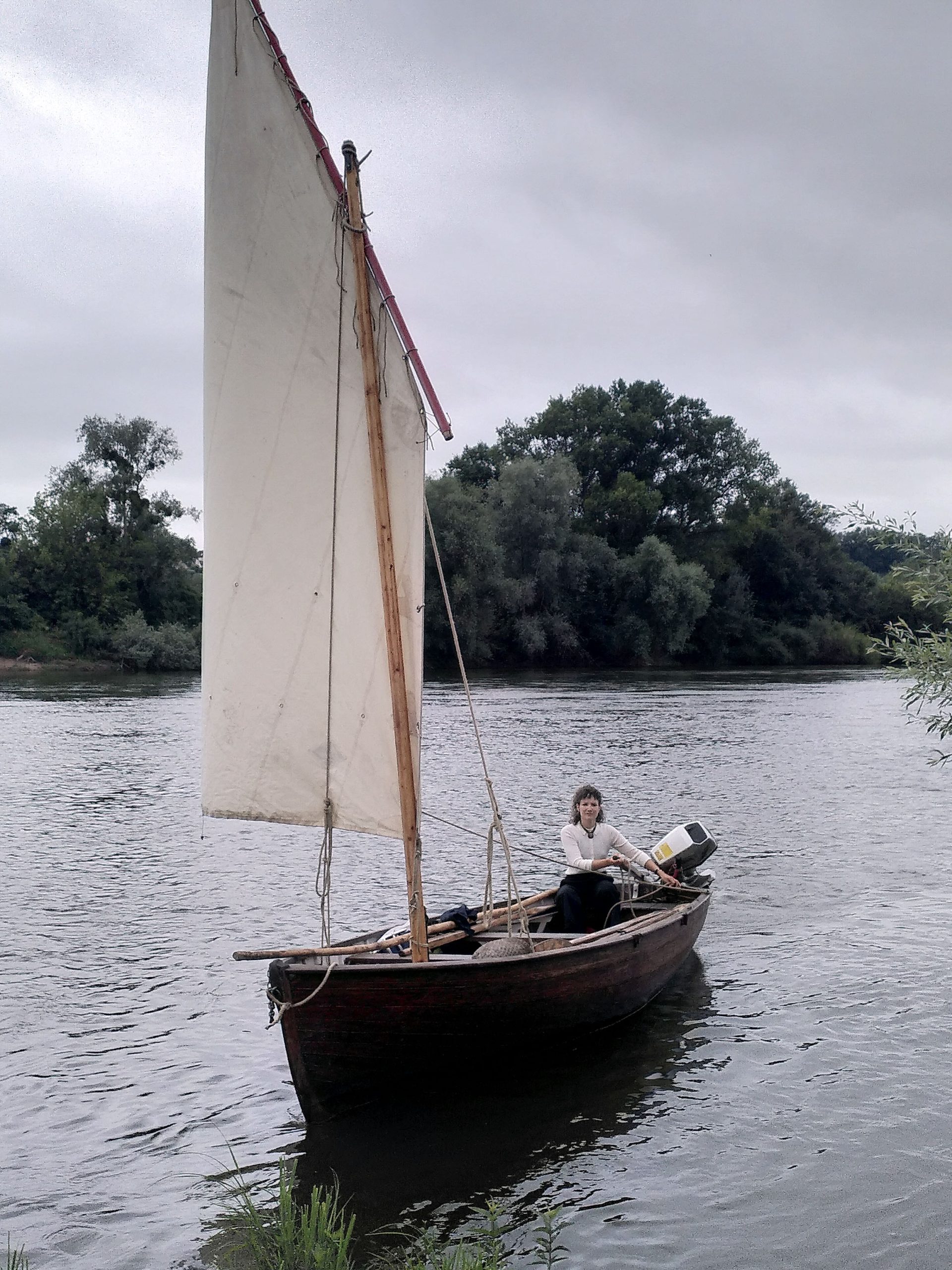Un gréement au tiers a été ajouté récemment afin d’expérimenter la navigation à la voile. Un pied de mât a été installé, sans modification de la structure originale de la coque. Cette adaptation est réversible et n’altère en rien l’authenticité de la construction. État actuel : mât en bois en bon état, gréement simple et fonctionnel.Voilure / à propos :