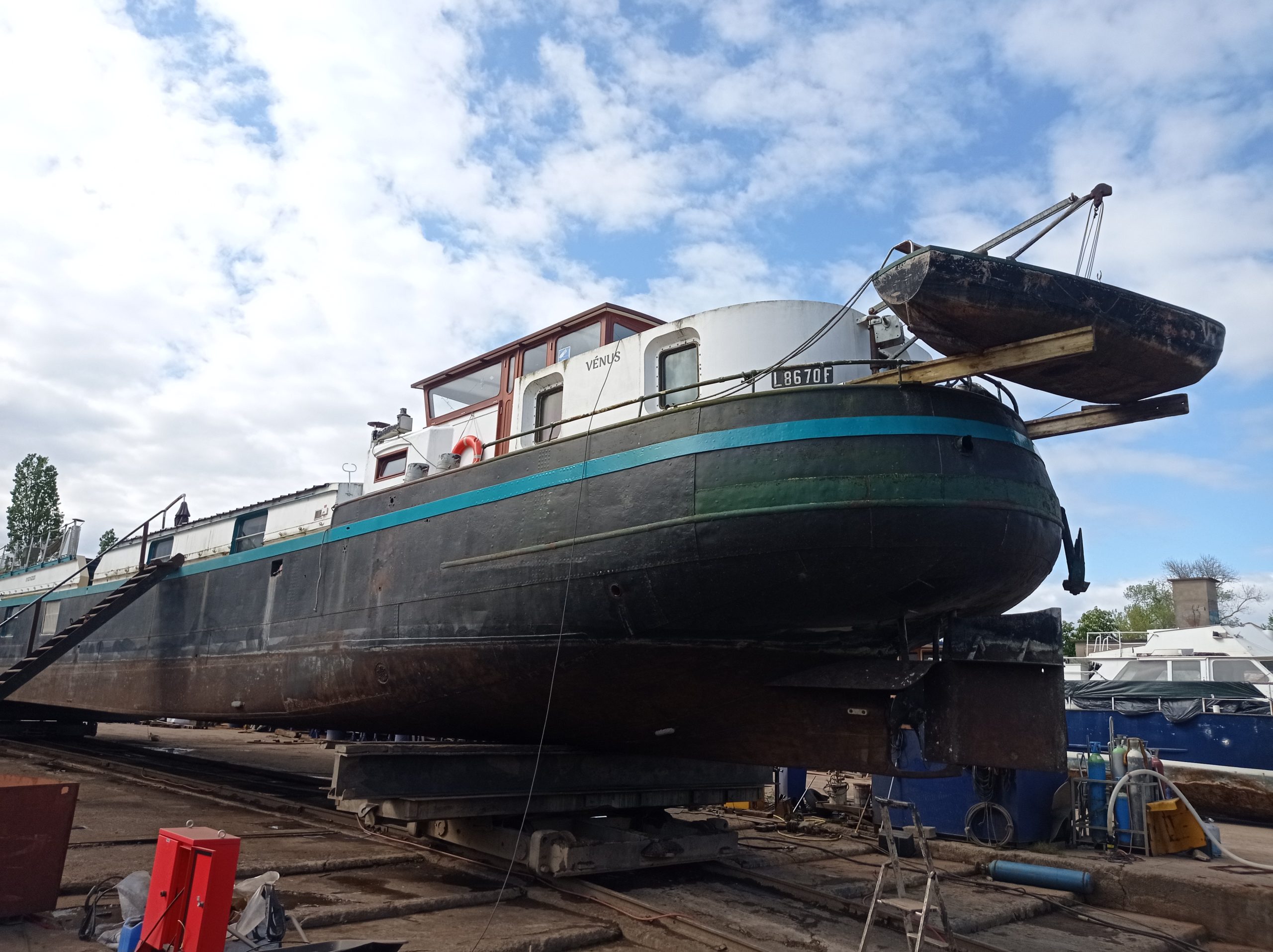 Le bateau a servi de bateau de commerce (transport de marchandises) de 1931 à 1986, date de fin de service commercial. Il est alors transformé en bateau logement. La cale principale est entièrement aménagée en habitation. L'ensemble du vaigrage est en bois. Les larges ouvertures oblongues apportent une belle luminosité. Elles ont été posées en suivant la ligne de rampage afin de ne pas dénaturer la ligne originelle du bateau. La timonerie dans l'esprit d'origine, en bois exotique, entièrement démontable afin d'abaisser le tirant d'air pour la navigation en canaux) a été légèrement rallongée pour permettre la communication entre le logement du marinier et la cale principale. Une porte étanche permet de traverser la cloison étanche et le ballast principal avant a été supprimé pour agrandir le logement du mousse et le rattacherà la cale principale (l'entrée par le pont avant est toujours fonctionnelle).Emménagements / état actuel :